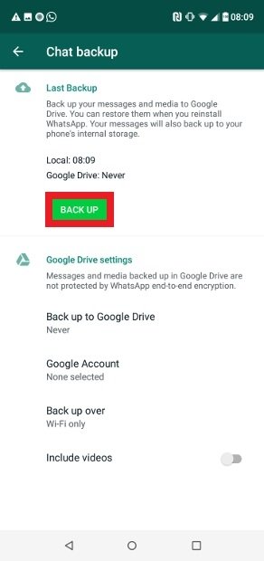 - Go to “Chats” and select “Chat Backup”.